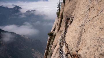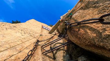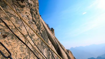 长空栈道位于华山南峰东侧山腰上,是华山派宗师——元代贺志真道长为远离尘世静修成仙,在悬崖绝壁上镶嵌石桩,铺上木板而成。走到栈道尽头,能够看到贺掌门修身的“贺祖洞”。
